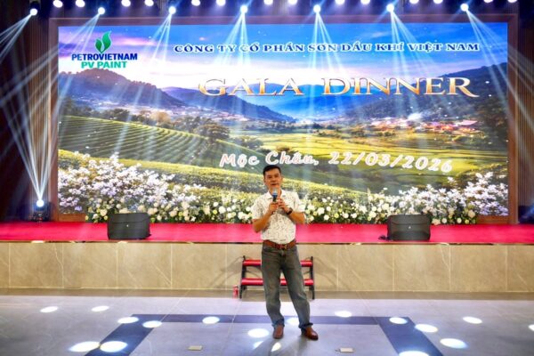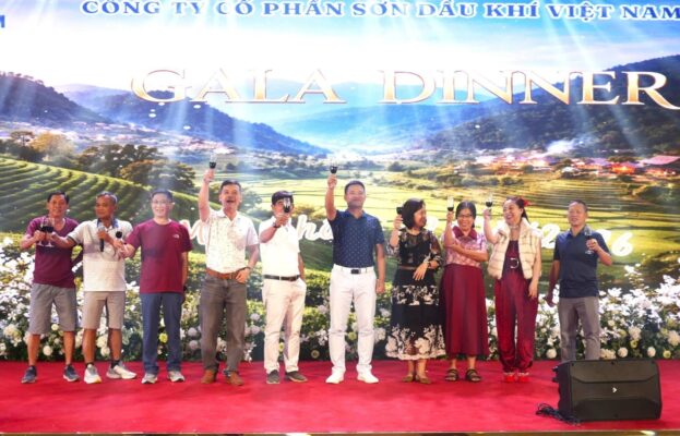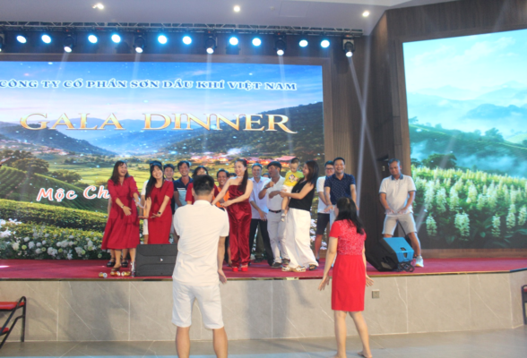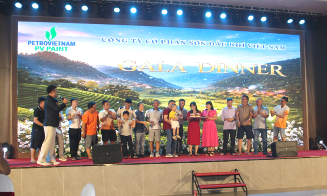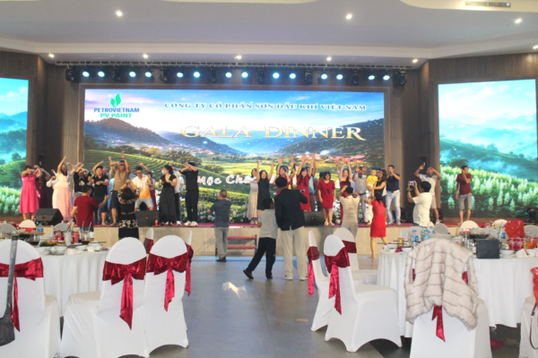 Sau một ngày tham quan và thưởng thức các đặc sản núi rừng Tây Bắc như dâu, cơm lam, thịt lợn bản nướng, gà đồi, trâu gác bếp…, đoàn đã tham dự chương trình Gala Dinner với chủ đề “PV PAINT – Du Xuân Lên Đỉnh”, diễn ra trong không khí ấm cúng và sôi động.