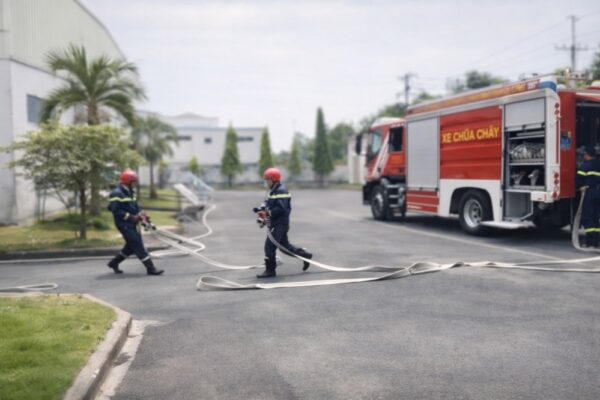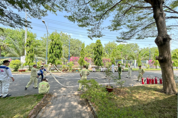 Chương trình diễn tập tình huống giả định, với sự tham gia của lực lượng Cảnh sát PCCC – CNCH và xe chữa cháy chuyên dụng. Các phương án xử lý được triển khai đồng bộ, từ khi phát hiện sự cố cháy, tiếp cận hiện trường, khống chế đám cháy, công tác cứu nạn cứu hộ đến xử lý tình huống sự cố tràn đổ hoá chất gây ô nhiễm môi trường.