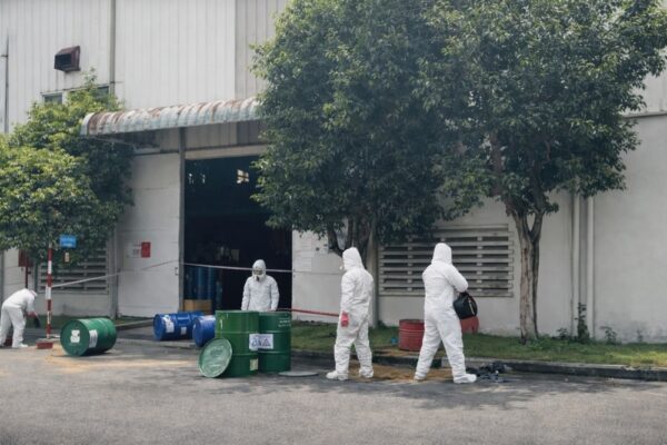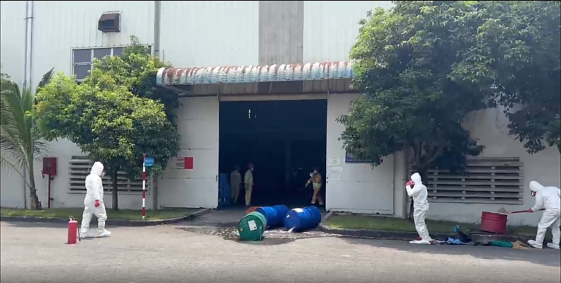 Trong khi lực lượng PCCC – CNCH và Đội Ứng phó THKC của Công ty đang triển khai công tác chữa cháy, chống cháy lan thì nhân viên lái xe nâng trong quá trình di dời tài sản bất cẩn làm rơi tràn đổ phuy xylene trước cửa số 1 của phân xưởng sản xuất.