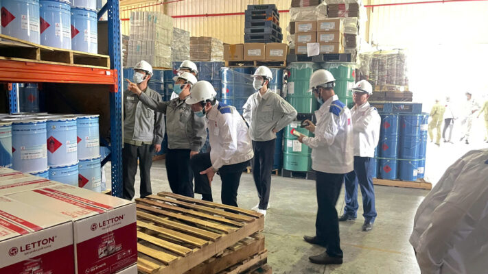 Trong khuôn khổ chuyến làm việc, đoàn đã trực tiếp đến nhà máy công ty tham quan khu vực kho lưu trữ và phân xưởng sản xuất sơn, tìm hiểu quy trình quản lý, bảo quản nguyên vật liệu cũng như hệ thống vận hành trong sản xuất. Các nội dung đánh giá tập trung vào điều kiện cơ sở vật chất, quy trình kiểm soát chất lượng và năng lực cung ứng của PV PAINT nhằm đáp ứng các yêu cầu kỹ thuật trong lĩnh vực công nghiệp và đóng tàu.