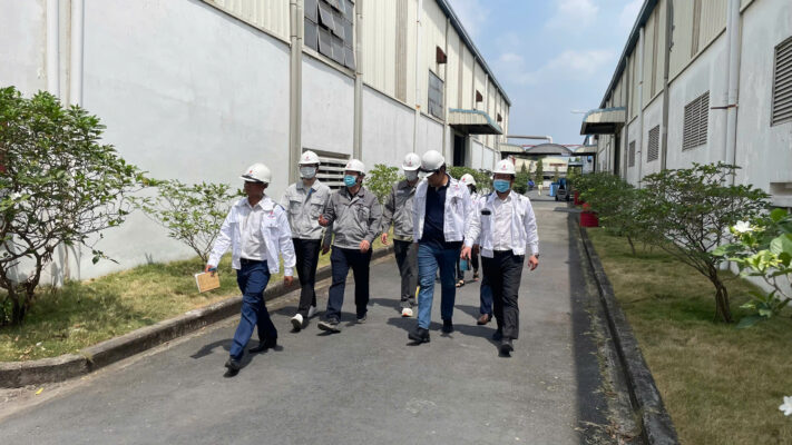 Các đại diện của PV PAINT dẫn đoàn khách SHI và PVSM đi tham quan và đánh giá nhà máy công ty.